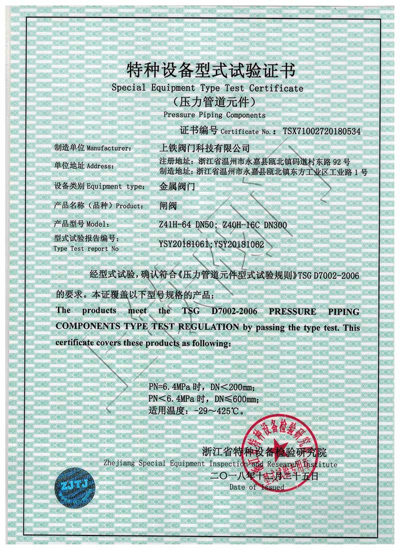 上鐵閥門科技有限公司是一家集設計、制造、銷售、服務于一體的專業(yè)閥門廠家,主要生產(chǎn)鑄鋼、鍛鋼、低溫鋼、不銹鋼等材質(zhì)的閘閥、截止閥、球閥、止回閥、節(jié)流閥、排污閥、蝶閥、氨閥等十二大品種,規(guī)格從DN10—800mm口徑,公稱壓力從PN1.0—16Mpa,500多個規(guī)格,并可根據(jù)客戶要求配置直齒輪傳動、蝸輪蝸桿傳動、氣動、電動、液動、氣液聯(lián)動裝置。適用介質(zhì)為:水、蒸汽、油品、燃氣、硝酸類、醋酸類等,適用溫度-196℃~550℃,產(chǎn)品廣泛用于石油、制鹽、化工、冶金、電力、酒類、制藥、造紙等行業(yè)。